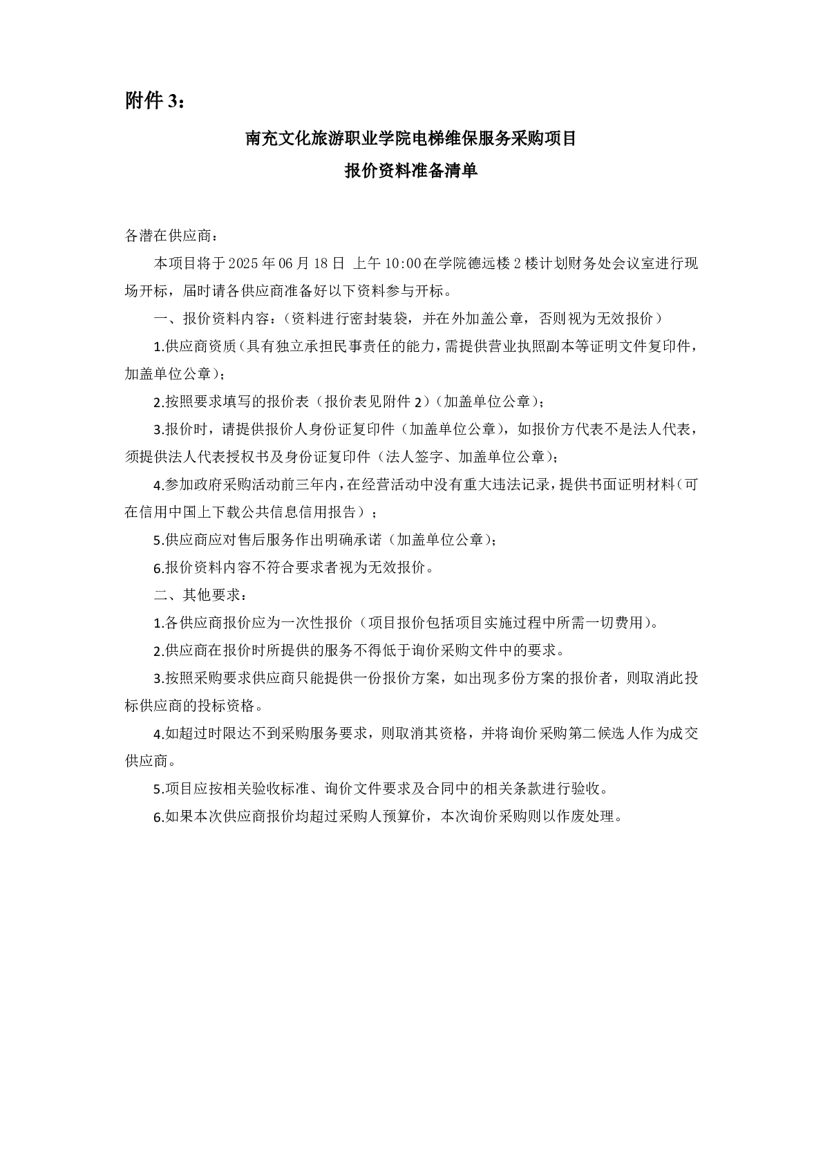 附件3:南充文化旅游职业学院电梯维保服务采购项目报价资料准备清单(1).pdf.pdf