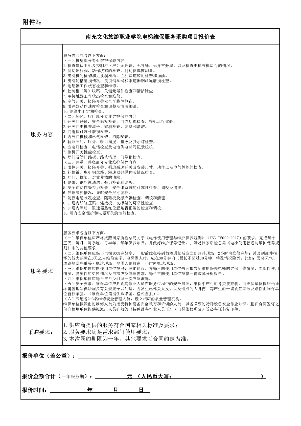 附件2:南充文化旅游职业学院电梯维保服务采购项目报价表(1).pdf.