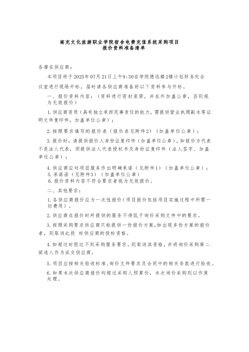 南充文化旅游职业学院宿舍电费充值系统采购项目公告