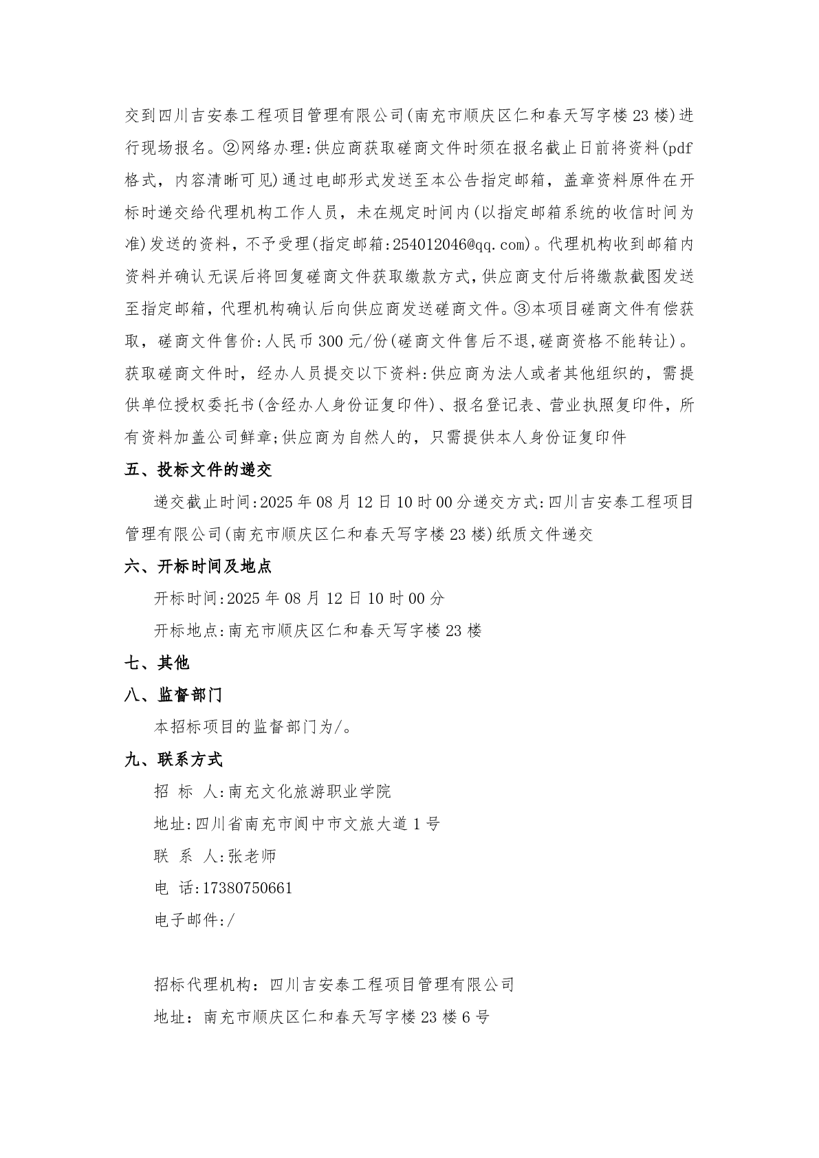 南充文化旅游职业学院2025级新生军训套装采购项目询价结果确认函...